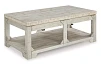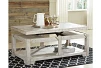 Take in the country fresh look of the Fregine lift top coffee & End Table Set and reminisce of a simpler time. Its farmhouse style is evident in its stocky design with planked top/bottom shelf, unique triangle accents and relaxed white washed finish. With a handcrafted look thanks to reclaimed wood, you'll love the casual feel this piece brings to your living area. Plus, easy lift top feature accommodates eating or working in front of the television.